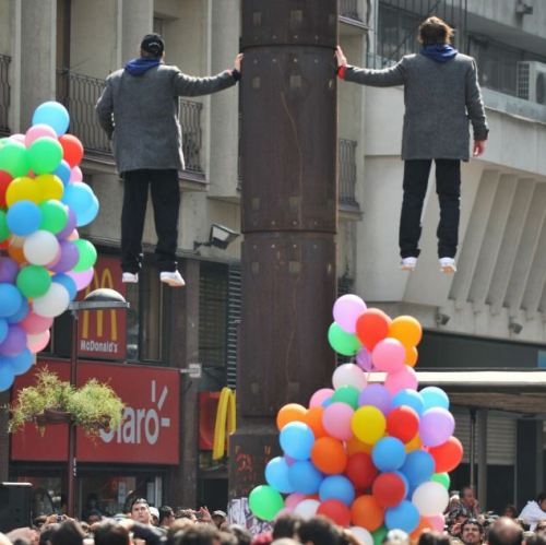 據(jù)報道,今年9月18日是智利獨立200周年的紀念日,這對在智利國內(nèi)很出名的雙胞胎兄弟尼古拉斯(Nicolas Luisetti Olhaberry)和約翰(John Paul Olhaberry)為了向這個特殊的節(jié)日致敬,提前用表演“漂浮術(shù)”的方式進行慶祝。