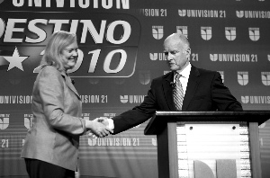 與布朗相比,惠特曼不僅擁有豐富的管理經(jīng)驗,更具經(jīng)濟實力。她自掏腰包1.4億多美元作為競選資金。足夠的財政資本使得惠特曼的競選電視廣告滿天飛,其中將對手布朗描繪成導致加州陷入困境的老政客。