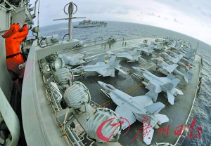 11月28日~12月1日,韓美聯(lián)合軍演。美國和韓國分別派出“華盛頓”號航空母艦(9.7萬噸)和“世宗大王”號宙斯盾艦等10多艘艦艇,在西海進行每天24小時演習(xí)。進行了包括海上自由攻防戰(zhàn)、對空防御訓(xùn)練、海上射擊等空前規(guī)模的演練。