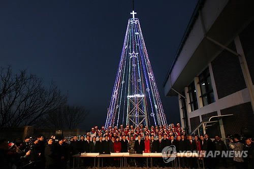 韓國國防部則就點燈一事稱,位于京畿道愛妓峰上的圣誕樹將會繼續(xù)點燈到明年1月8日。