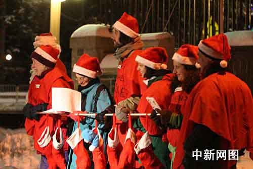 中新網(wǎng)渥太華12月13日電(韓瀟)12日晚,環(huán)保組織“為地球而戰(zhàn)”成員打扮成圣誕老人,提著代表工業(yè)污染的煤炭來到加拿大聯(lián)邦保守黨政府總理哈珀家“送禮”,以抗議加政府無視北極冰蓋融化,破壞巴厘島氣候變化會(huì)議的行為。警察戒嚴(yán)保護(hù)總理宅邸,與抗議者短暫接觸后,逮捕了部分“圣誕老人”。