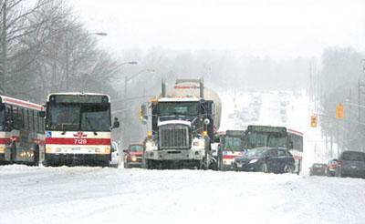 暴風(fēng)雪令多市全城陸空交通由早上開始嚴(yán)重受阻。多倫多公交、私家車等,全都延誤近1小時(shí),有的甚至取消。
