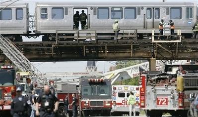 芝加哥高速運(yùn)輸管理局發(fā)言人霍欣斯基說,當(dāng)天上午10時(shí)左右,這列包括4節(jié)車廂的列車行至城南一處高架軌道上,前兩節(jié)車廂突然脫軌,而后兩節(jié)車廂依然停留在高架軌道上。