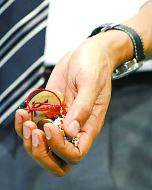 會(huì)上他向與會(huì)女性展示其隨身攜帶的刻有十字架的護(hù)身符。