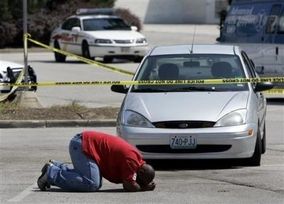 死者的一位親戚趕到槍案現(xiàn)場后非常悲痛。