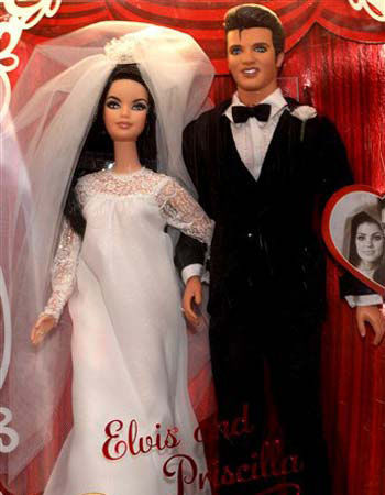 中新網(wǎng)8月13日電 本月16日將是一代搖滾樂(lè)巨星貓王埃爾維斯•普雷斯利( Elvis Presley )逝世31周年,美國(guó)芭比娃娃制造商美泰(Mattel)乘機(jī)推出貓王和普麗西拉(Priscilla)結(jié)婚紀(jì)念系列版的芭比娃娃,以滿足貓王迷的需要。