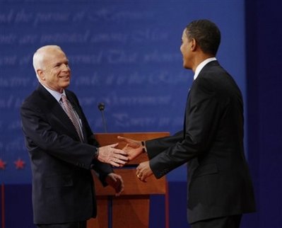 麥凱恩與奧巴馬在第一場辯論中
