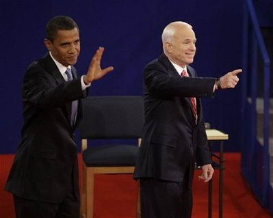 奧巴馬與麥凱恩均表示有信心贏得這場辯論,并握手示意。在辯論開始后,奧巴馬認為,美國目前正面臨自經濟大蕭條以來最嚴重的金融危機。奧巴馬還表示,美國政府應該確保華爾街巨頭不會從那些倒閉的公司中牟利。如果他當選美國總統(tǒng),將會為大部分美國人減稅。而麥凱恩則表示,如果他當選將會要求財政部購買不良住房信貸抵押。