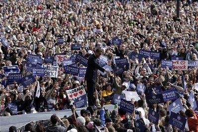 奧巴馬在科羅拉多的兩場(chǎng)造勢(shì)大會(huì),吸引了15萬人蜂涌而至,在丹佛參加大會(huì)的民眾超過10萬。