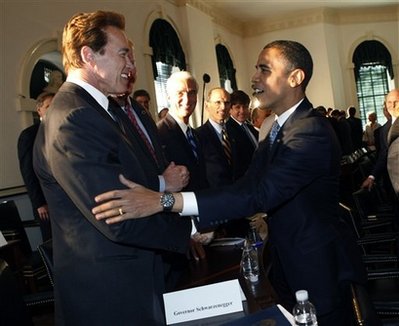奧巴馬與加利福尼亞州州長(zhǎng)共和黨人施瓦辛格會(huì)面