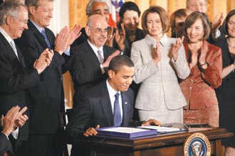 中新網(wǎng)2月6日電 據(jù)臺灣《聯(lián)合報》報道,美國眾院4日表決擴(kuò)大“州兒童醫(yī)保計劃”(SCHIP)法案,結(jié)果以290票對135票的壓倒性比數(shù)通過,奧巴馬總統(tǒng)隨即在白宮簽署使其生效,并稱之為邁向?qū)崿F(xiàn)他“全民醫(yī)!备傔x承諾的第一步。