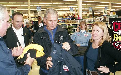 布什21日在達(dá)拉斯一家五金店購物時(shí)由于穿著過于樸素,店里的顧客竟沒認(rèn)出這位顧客就是曾經(jīng)世界上最有權(quán)力的人物。