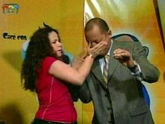 這位剽悍的紅衣女子,是與委內(nèi)瑞拉總統(tǒng)查韋斯同黨的國會議員薇瑞拉(Iris Varela)。一旁身穿灰色西裝的則是政論節(jié)目記者阿佐卡爾(Gustavo Azocar)。20日的現(xiàn)場節(jié)目中的激烈打斗讓全委內(nèi)瑞拉的觀眾目瞪口呆。