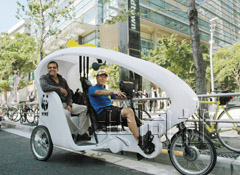 中新網9月14日電 最近東京街頭出現(xiàn)了一種速度快于步行,但又比自行車稍慢的德國產三輪出租車“Velotaxi”。據(jù)日本共同社報道,乘坐這種出租車可以通過從未體驗過的行駛速度瀏覽東京街景,很受外國游客的歡迎。