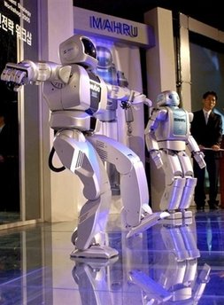 韓國(guó)研究的人型機(jī)器人Mahru(右)