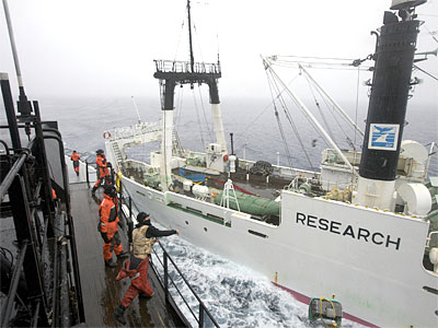 中新網(wǎng)12月29日電 據(jù)臺(tái)灣聯(lián)合新聞網(wǎng)報(bào)道,為阻止日本捕鯨船在南極捕撈鯨魚,美國環(huán)保組織海洋守護(hù)者協(xié)會(huì)的船只“史蒂夫•歐文”號的船員日前在南極洲莫森半島以北海域向日本捕鯨船“海幸丸”號投擲“臭彈”和裝有油漆的玻璃瓶。