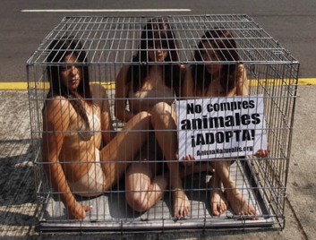 中新網(wǎng)1月4日電 綜合報道,1月3日,墨西哥城3名動物權益組織成員坐在一個籠子中,對買賣寵物的行為表示抗議。他們希望以這種形式喚起人們的注意,呼吁人們不要販賣寵物。