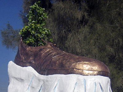 中新網(wǎng)1月30日電 伊拉克豎立了一個巨大的青銅鞋像雕塑,為的是向去年前美國總統(tǒng)布什到訪時,向他擲鞋的伊拉克記者扎伊迪致敬。