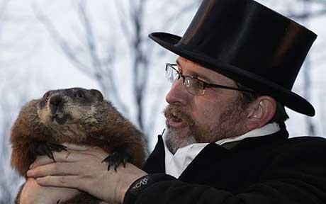 今年的2月2日,13000名觀眾聚在在賓夕法尼亞州的小鎮(zhèn)旁蘇托尼(Punxsutawney)觀察一只名叫“菲爾”的土拔鼠的行為!胺茽枴笔枪俜街付ǖ耐涟问髿庀箢A(yù)測員,2月2日早晨,“菲爾”被工作人員弄出洞,面對眾人和媒體,尋找自己的影子,然后將預(yù)測結(jié)果告訴鎮(zhèn)上帶高帽的老人比爾·庫柏,再由他向大家宣布預(yù)測結(jié)果。據(jù)說,庫柏是世界上唯一一個(gè)懂土拔鼠語言的人。這一天天氣晴好,土拔鼠“菲爾”看到了自己的影子,那么預(yù)示著美國的冬天還要持續(xù)6個(gè)星期。根據(jù)旁蘇托尼土拔鼠俱樂部的記載,自1887年起,菲爾看到過自己的影子達(dá)97次,沒看到的有15次,有9年沒有記錄。這個(gè)小鎮(zhèn)今年吸引了來自日本、冰島和埃及的游客,小鎮(zhèn)聲稱菲爾的預(yù)測從來就沒有失誤過。