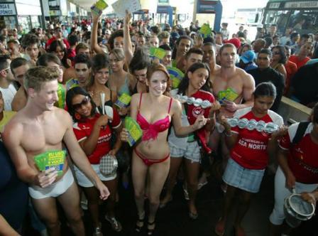 中新網2月18日電 據(jù)巴西媒體報道,17日是巴西的內衣節(jié),巴西首都巴西利亞的一座公共汽車站,一群身穿性感內衣的模特招搖過市,吸引大批路人注目。