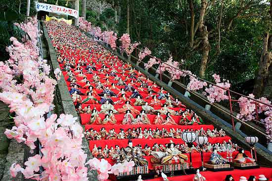 每年的3月3日是日本的傳統(tǒng)節(jié)日女兒節(jié),父母通常會把人偶裝飾在家門口,祈求女兒健康成長。勝浦居民從2001年開始,每年2月下旬起舉行盛大的女兒節(jié)人偶展示活動,女兒節(jié)已成為當?shù)芈糜萎a(chǎn)業(yè)的支柱項目。今年有約3萬個人偶出現(xiàn)在勝浦的大街小巷。(新華社記者 任正來 攝)