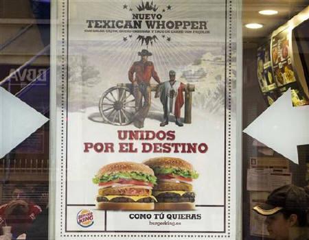 中新網(wǎng)4月15日電 據(jù)路透社報(bào)道,漢堡王公司為最新推出的德州-墨西哥式漢堡所做的廣告激怒了墨西哥官員,因該廣告中的一名墨西哥男子身披該國國旗蹲坐著。