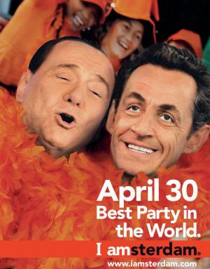 荷蘭的國(guó)慶節(jié)是4月30日,因?yàn)檫@一天是荷蘭女王朱麗安娜·路易絲·愛(ài)瑪·瑪麗·威廉敏娜的生日。為了借此機(jī)會(huì)吸引海外游客,荷蘭廣告公司竟然想出奇招,利用各國(guó)領(lǐng)導(dǎo)人創(chuàng)造非常搞笑的宣傳畫。