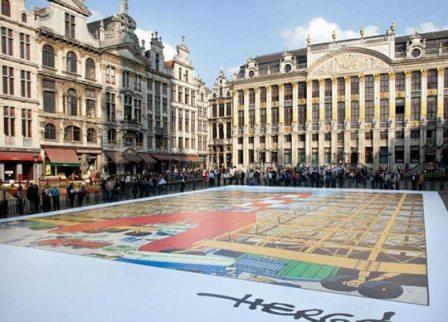 中新網(wǎng)5月11日電 綜合外電報(bào)道,比利時(shí)首都布魯塞爾大廣場(chǎng)(Grote Markt)日前展示了一幅占地672平方米、重350公斤的巨型插圖,上面繪有比利時(shí)漫畫(huà)家艾爾吉(Herge)備受歡迎的丁丁(Tintin)漫畫(huà)形象。