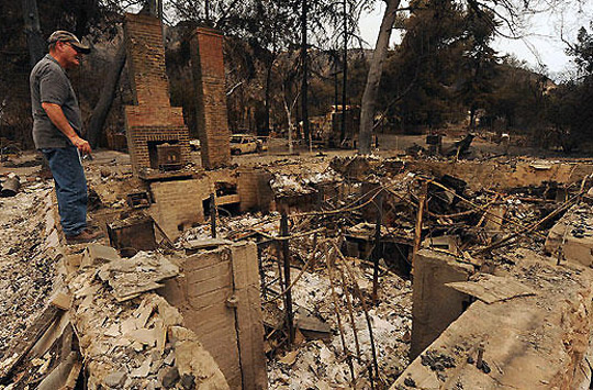 據(jù)報道,近年來,加州森林大火有愈演愈烈的趨勢。這一現(xiàn)象的出現(xiàn)與加州天氣狀況有密切聯(lián)系。南加州西臨太平洋,一向氣候干燥,降雨主要集中在冬季,而6月至8月屬旱季,幾乎沒有一點雨水。加上當(dāng)?shù)亓帜久,山上山下遍布枯枝敗葉。一旦有星星之火,就難免成燎原之勢。美國《科學(xué)》雜志發(fā)表報告認(rèn)為,在所有林火中,人為因素導(dǎo)致的占90%左右,其中包括用火不慎和有意縱火。