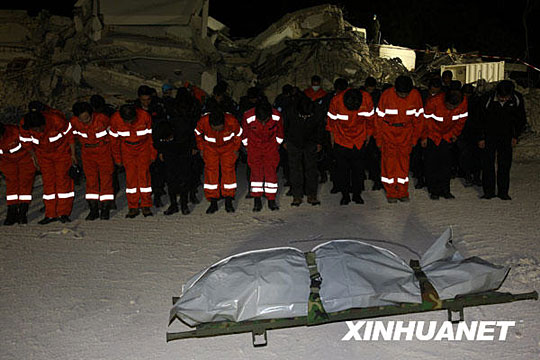 目前,救援隊(duì)正按照孟建柱的要求,爭(zhēng)分奪秒,竭盡全力搜救中國(guó)被埋人員。最新消息稱(chēng),中國(guó)國(guó)際救援隊(duì)已于海地當(dāng)?shù)貢r(shí)間16日凌晨3時(shí)30分發(fā)現(xiàn)第一具中方失蹤人員遺體,F(xiàn)場(chǎng)人員對(duì)這名遇難中國(guó)人舉行了默哀儀式。對(duì)其他幾名中國(guó)維和人員的搜救工作仍在進(jìn)行中。