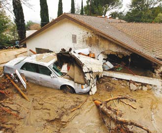 美東5日開始下起暴風雪,西岸南加州則是“烏云罩頂”,5日開始的大雨為該地帶來不少災情,多處山區(qū)爆發(fā)土石流,41棟房屋及數(shù)十車輛損毀。3名駕駛因為5日晚的大雨視線不良,不幸車禍喪生。