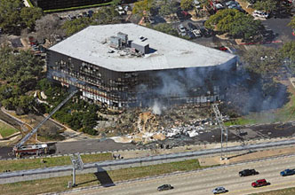 事發(fā)于美國(guó)時(shí)間早上約9時(shí)56分,53歲的軟件工程師斯塔克駕駛一架Piper Cherokee PA-28小型飛機(jī),首先在低空盤(pán)旋,然后直沖7層高的國(guó)內(nèi)稅收署辦公大樓的2樓,隨即引起猛烈爆炸,并燃起大火,冒出大量濃煙。事發(fā)時(shí)大樓內(nèi)約有190人,各人驚慌逃生,一些人在情急下從窗口跳下。