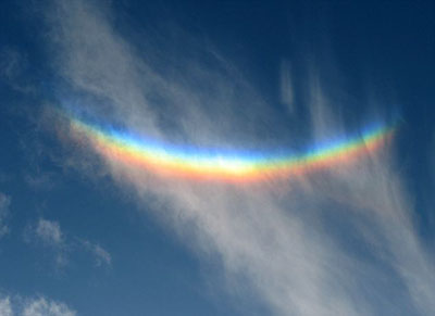 專家解釋,一般彩虹的出現(xiàn),是光線穿透雨點后折射到另一處時所產(chǎn)生的現(xiàn)象。但這朵天空中的“微笑”是日光穿透卷云或?qū)釉浦械臄?shù)百萬顆細(xì)微冰晶粒子時形成。