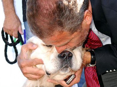 據(jù)克羅地亞“新聞”網(wǎng)站報道,當(dāng)?shù)財z影師杜布拉夫科·瓦圖茨拍攝下了這一幕。當(dāng)時這位現(xiàn)任的薩格勒布市市長雙手緊緊抱住金毛的脖子并“強(qiáng)吻”,這一反常舉動不僅讓周圍的人們吃驚,也嚇壞了原本溫順的金毛,緊接著便出現(xiàn)了戲劇性的一幕。