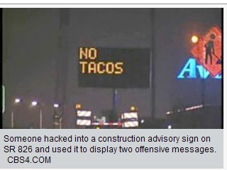 公路旁的電子廣告牌,應該是提供交通信息,但邁阿密這條公路旁的廣告牌,卻出現(xiàn)了“不要拉美人士”、“不要玉米餅”的字樣,原來是這個廣告牌遭到黑客入侵,惡意竄改了顯示的的字樣。
