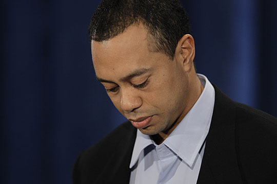 一身西裝的伍茲在職業(yè)高爾夫球巡回賽總部俱樂部宣讀聲明時(shí)面無表情,在座的40人中有他的母親,但妻子埃琳不在場(chǎng)。伍茲表示所有責(zé)任應(yīng)由他獨(dú)自承擔(dān),希望傳媒給家人空間。他強(qiáng)調(diào)妻子埃琳在他發(fā)生離奇車禍的當(dāng)晚“沒有攻擊我”,稱自己家中從未發(fā)生過“家庭暴力事件”。