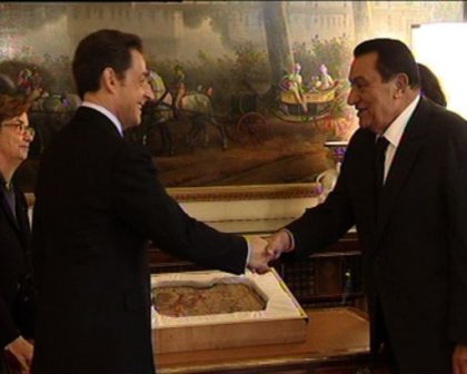 據(jù)報(bào)道,14日,薩科齊在巴黎會見了前來訪問的穆巴拉克,雙方在總統(tǒng)府愛麗舍宮享用正式午餐后, 薩科齊交還給穆巴拉克一件埃及文物——法老時(shí)期裝飾石碑的殘件之一。