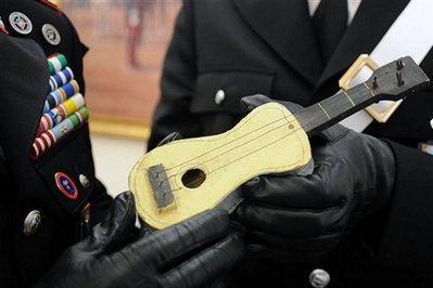 警方稱,這位商人洗清了自己被指欺詐的罪名。而這把珍貴的小吉他也會如預期所定,送到馬卡尼歐(Maccagno)的當代藝術(shù)博物館珍藏。這個博物館位于意大利北部,靠近帕里西的故鄉(xiāng)。