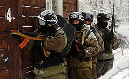 據(jù)報(bào)道,一名警方發(fā)言人說,俄羅斯安全部隊(duì)在靠近俄印古什共和國(guó)臨時(shí)首府納茲蘭市的?ㄕ畚(Ekazhevo)村展開清剿行動(dòng),包圍了一個(gè)當(dāng)?shù)嘏褋y分子的窩藏地點(diǎn)。叛亂分子拒絕投降,于是安全人員向叛亂分子開火。在激戰(zhàn)當(dāng)中,安全部隊(duì)打死4名叛亂分子。