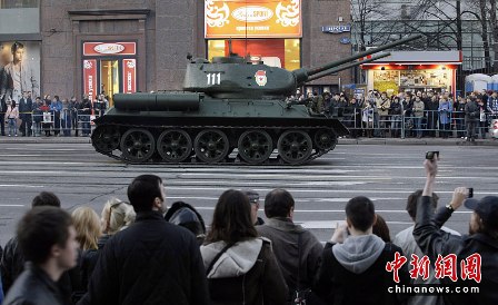 據(jù)報(bào)道,27日,俄羅斯出動(dòng)約159輛軍用車輛及1萬(wàn)多名軍人,進(jìn)行了關(guān)于今年5月9日俄羅斯衛(wèi)國(guó)戰(zhàn)爭(zhēng)“勝利日”65周年時(shí),紅場(chǎng)閱兵儀式的彩排活動(dòng)。此次閱兵分為兩部分:歷史部分和現(xiàn)代部分。歷史部分由身穿衛(wèi)國(guó)戰(zhàn)爭(zhēng)時(shí)期軍服的士兵游行,同時(shí)還會(huì)有9輛T-34坦克和8輛SU-100自行火炮進(jìn)行在游行隊(duì)伍當(dāng)中。現(xiàn)代部分則由13輛老虎裝甲車、BTR-80裝甲車、BMP-3步兵戰(zhàn)車、T-90A坦克和S-400防空系統(tǒng)等組成。