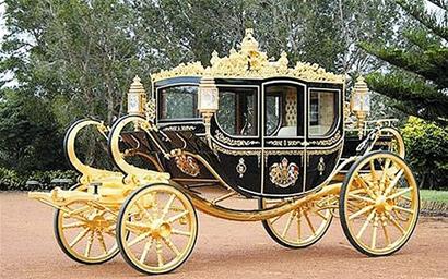 據(jù)報(bào)道,這輛奢華無(wú)比的“黃金婚車(chē)”名叫“不列顛尼婭(Brittania)”,由澳洲工匠弗萊.克林頓耗時(shí)6年打造?肆诸D此前為英國(guó)女王伊麗莎白二世制造過(guò)多輛專(zhuān)屬馬車(chē)。這輛奢華的“黃金婚車(chē)”全車(chē)重達(dá)2.5噸,高3米,車(chē)身上裝飾有總計(jì)24顆鉆石、130顆藍(lán)寶石和超過(guò)400片金葉。車(chē)身上一百多塊木材分別取自倫敦塔、19世紀(jì)英國(guó)海軍名將納爾遜的“勝利號(hào)”戰(zhàn)艦以及16世紀(jì)亨利八世國(guó)王的“瑪麗.羅斯號(hào)”戰(zhàn)艦等重要王室建筑和文物,將是迄今為止英國(guó)最具有歷史意義的車(chē)輛之一。