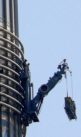 據(jù)英國《每日郵報(bào)》6日?qǐng)?bào)道,一家名為Cox Gomyl的澳大利亞清潔公司負(fù)責(zé)為這個(gè)世界最高塔擦洗窗戶,保持它時(shí)時(shí)明亮干凈。該公司總經(jīng)理哈丁(Dale Harding)表示,為了方便工人在高塔上下移動(dòng),特地耗資500萬英鎊設(shè)計(jì)、建造和安裝了一種特殊的高科技設(shè)備,即玻璃清洗傳送帶,由一條條沿著塔身鍛造的可伸縮軌道以及上面安裝的承重平臺(tái)組成,工人可以在上面安全地作業(yè)。