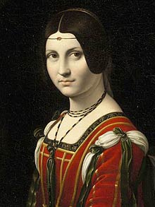 喬治接著解釋道,歷史上曾有兩幅文藝復(fù)興時(shí)期的肖像被冠名以《La belle ferronnière》之名。第一幅就是現(xiàn)在看到的這幅,它有時(shí)也被稱(chēng)作《不知名婦女的肖像》,畫(huà)中人有可能是盧克雷齊亞·克里韋利,是米蘭公爵盧多維科·斯福扎的一個(gè)情婦,曾收藏此畫(huà)的盧浮宮將此畫(huà)歸為達(dá)芬奇畫(huà)派的作品,認(rèn)為它可能出自達(dá)芬奇之手也可能是由達(dá)芬奇的某一名學(xué)生所畫(huà)。另一幅肖像畫(huà)畫(huà)的是切奇莉亞·加勒蘭妮,她是盧多維科的另一個(gè)情婦,那幅畫(huà)幾乎可以確定就是達(dá)芬奇的作品,它也常被稱(chēng)作《抱貂的女士》。