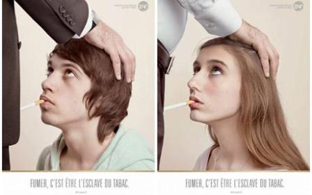 據(jù)英國《每日電訊報(bào)》24日?qǐng)?bào)道,法國近日一則禁煙廣告因涉嫌性暗示引起一片嘩然。該廣告有男女兩個(gè)版本,意在提醒人們:吸煙好比是成了煙草的奴隸,但該廣告圖中的男女青少年的動(dòng)作讓人聯(lián)想起口交,引起極大爭議。