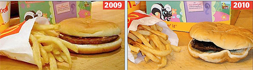 中新網(wǎng)3月20日電 同一份麥當勞“開心樂園餐”,相隔12個月拍下的兩張照片,看起來竟然幾乎一模一樣。據(jù)香港《文匯報》報道,一般來說,放了一年的食物應(yīng)該發(fā)霉或分解成一堆廢料,但麥當勞兒童餐卻幾乎沒有腐壞,只是漢堡牛扒萎縮和不新鮮的漢堡面包干裂。