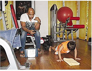 父母于是請(qǐng)來印度著名的私人健身教練薩特亞吉特·喬拉西亞對(duì)羅納克進(jìn)行更為專業(yè)的體能訓(xùn)練。據(jù)悉,健身教練喬拉西亞專門負(fù)責(zé)訓(xùn)練印度的名人和演員。過去2年來,羅納克每周都會(huì)前往健身房訓(xùn)練數(shù)次,在健身教練喬拉西亞的指導(dǎo)下,利用啞鈴和杠鈴?fù)瓿筛鞣N高強(qiáng)度的器械練習(xí)。最折磨人的是,每次訓(xùn)練時(shí),健身教練喬拉西亞還會(huì)拿著一塊秒表掐算時(shí)間,督促羅納克在最短時(shí)間內(nèi)做成百上千個(gè)俯臥撐,以此增加他的體能和耐力。在跟隨健身教練喬拉西亞進(jìn)行了2年“魔鬼訓(xùn)練”后,羅納克將自己鍛煉成了一個(gè)擁有結(jié)實(shí)肌肉和驚人力量的“大力士”。日前,羅納克竟在短短40分鐘時(shí)間里,一口氣接連做了多達(dá)1500個(gè)俯臥撐,從而創(chuàng)下了一項(xiàng)新的印度全國(guó)紀(jì)錄!當(dāng)羅納克完成這一壯舉的錄像片段在網(wǎng)上曝光之后,許多人都看得目瞪口呆,無法相信自己的眼睛。