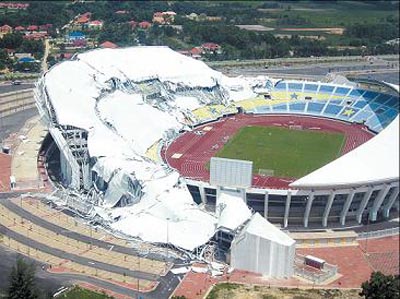 意外發(fā)生于當(dāng)?shù)貢r(shí)間2日上午9時(shí)30分左右發(fā)生,涉及坍塌的部分包括體育館的頂蓋前方及左右兩方,坍塌范圍約占全頂蓋建筑結(jié)構(gòu)的60%,F(xiàn)場所見,整個(gè)全長134米橢圓形頂蓋,其中80米陷入墜毀的情況。
