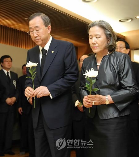 在金大中生前接受治療的醫(yī)院臨時(shí)設(shè)立的靈堂中,潘基文表達(dá)了對金大中逝世的難過之情和失落感。他向金大中的遺孀、家人及韓國人民和政府表示深切慰問。