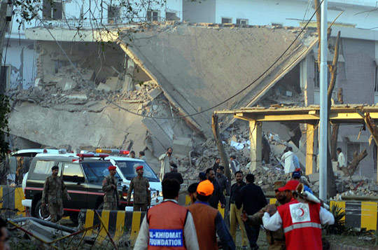 目擊者稱,現(xiàn)場升起巨大的濃煙,到處都是殘磚碎瓦。大樓前部和中部全部倒塌。巴基斯坦軍方發(fā)言人表示,這是一起自殺式汽車炸彈襲擊。相關(guān)人員正在廢墟搜尋是否有人被埋在下面。美聯(lián)社消息稱有35人受傷。