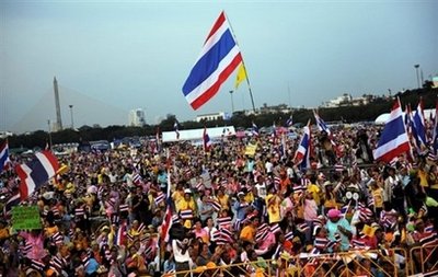 他信上周在接受《泰晤士報(bào)》訪問時(shí)主張改革王室周邊的制度,激怒了首相阿披實(shí)的聯(lián)合政府和“黃衫軍”。